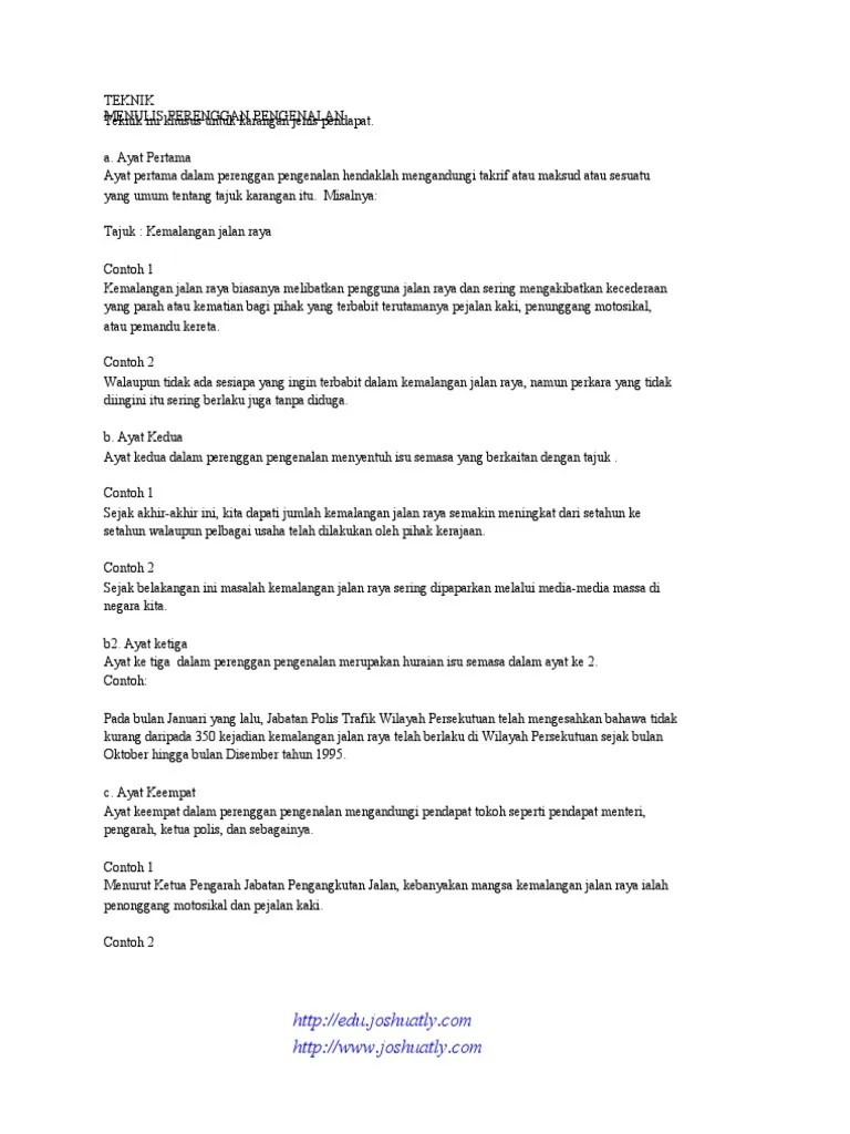Disini kami kongsikan cara cikgu cikgu . Contoh penanda wacana seperti berikut: Vii) penanda menulis dua huraian dalam satu ayat. Penanda wacana untuk memulakan ayat pendahuluan karangan. Kerajaan telah berusaha untuk membanteras gejala rasuah, namun amalan yang berakar . Cara menulis pendahuluan karangan dengan menggunakan teknik itchf.